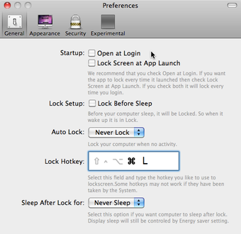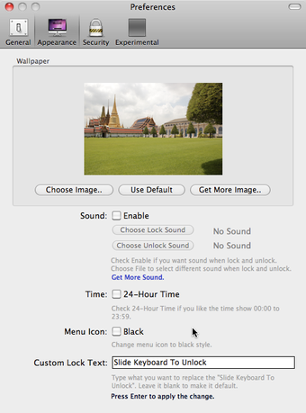 Lock Screenではスリープ時の自動ロック、指定時間後の自動ロックなど、様々なロック方法が用意されています。また、表示する画面を変えたり、タッチパッドで解除するようにしたり、「パスパターン」としてキー操作を指定することも可能です。初期設定ではどの場所をスライドしても解除することができてしまうため、パスワードやパスパターンを設定しておきましょう。自分好みに設定をカスタマイズするには、メニューバーのアイコンをクリックし、「Preferences」を選んで設定します。